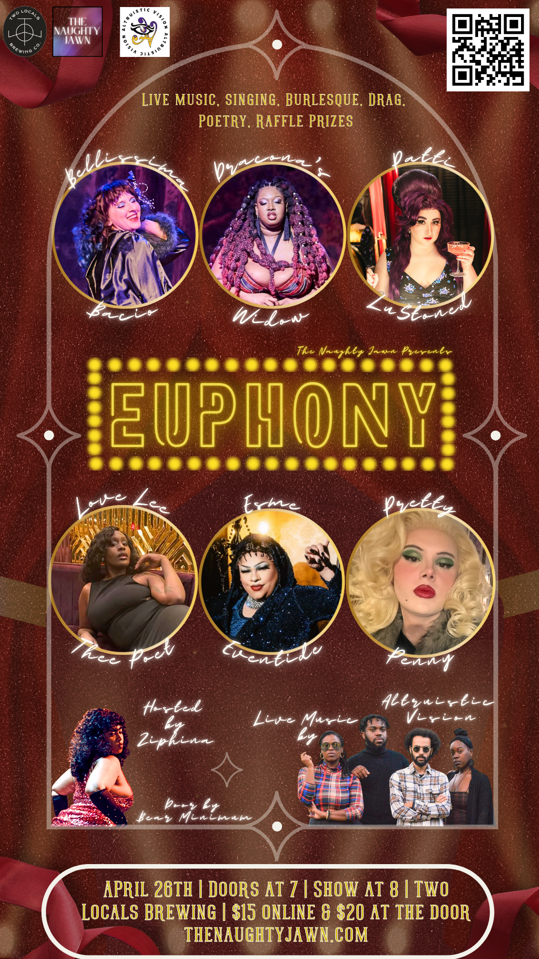The Naughty Jawn started in 2023 to create events that spotlight our community of Philly-native and local performers. Our goal is to make space to support a variety of artists, ranging in style, gender, age, race, etc. With the resources created, we aim to curate a fun night of adult entertainment, as well as increasing the chance for performers to be booked! We're here to celebrate Philly culture, and let our freak flag fly. Indulge in our cabaret entertainment by our talented Philly-native and local performers, play games to win prizes, and get a chance to come onstage yourself. Philly, let's get filthy.